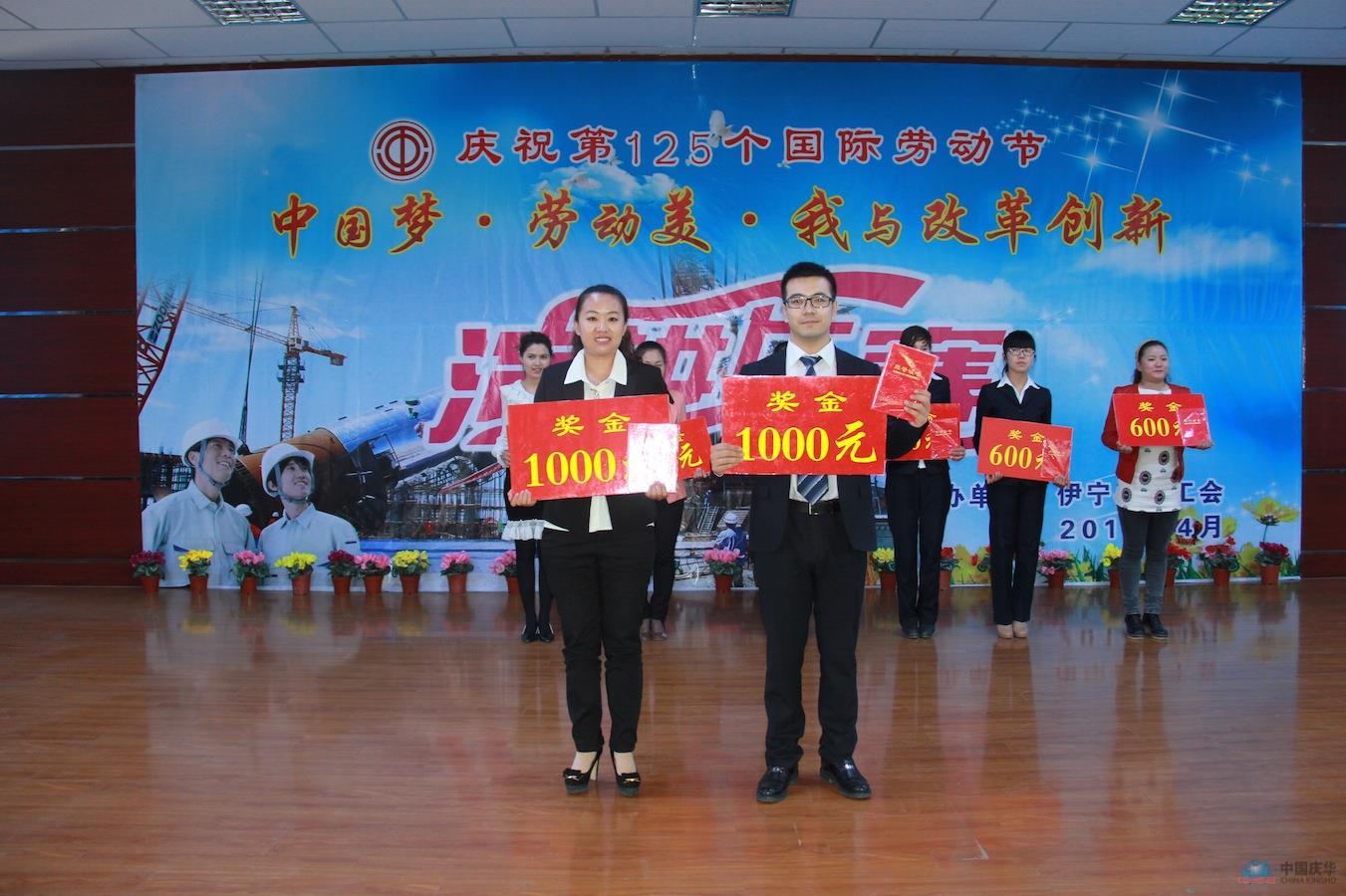 中國(guó)慶華新疆消息(馬進(jìn))為迎接第125個(gè)“五一”國(guó)際勞動(dòng)節(jié),踐行黨的群眾路線,切實(shí)開展職工主題教育宣傳活動(dòng),4月17日,新疆伊寧縣總工會(huì)主辦“中國(guó)夢(mèng)•勞動(dòng)美•我與改革創(chuàng)新”主題演講比賽,比賽分為民族組與漢族組,各組分別設(shè)立一、二、三等獎(jiǎng)及優(yōu)秀獎(jiǎng)。最終,新疆集團(tuán)的阿拉法特與王瑤,包攬民、漢兩組一等獎(jiǎng),新疆集團(tuán)工會(huì)聯(lián)合會(huì)榮獲“優(yōu)秀組織獎(jiǎng)”。